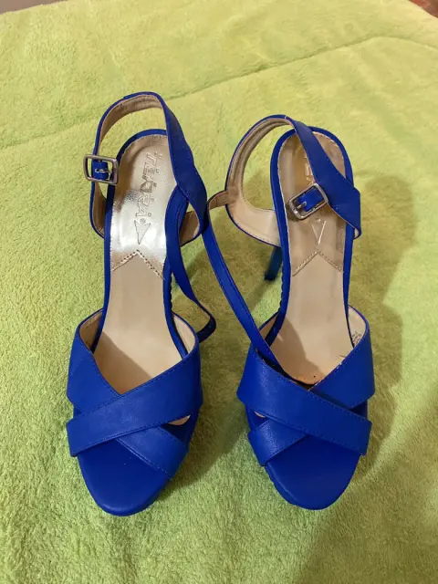 Sandalia. Sandalia abierta con tacón de altura de 13 cm de la marca cklass color azul muy padres para este calor