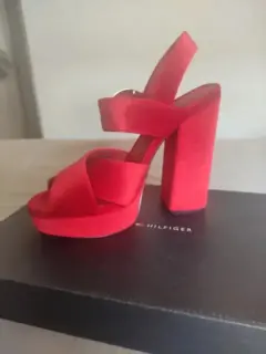 Sandalia alta Tommy Hilfiger. Sandalia en gamuza color rojo marca Tommy Hilfiger. Completamente nuevas en su caja. Tacón de 13 cm de altura.