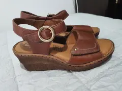 Sandalia de piel. Sandalia de piel en color cafe, se desprende de la parte de enfrente para ajustarse al tamaño muy comoda para caminar. Tacon de 4cm marca Flexi