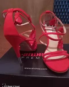 SANDALIA ELEGANTE EN COLOR ROJO. Conquista a todos mientas luces increíble junto a esta sandalia ANDREA PREMIUM con textura suave, flores decorativas en látigo y suela oro rosa.Cero detalles.Están hermosas, y en excelentes condiciones.Caja original.