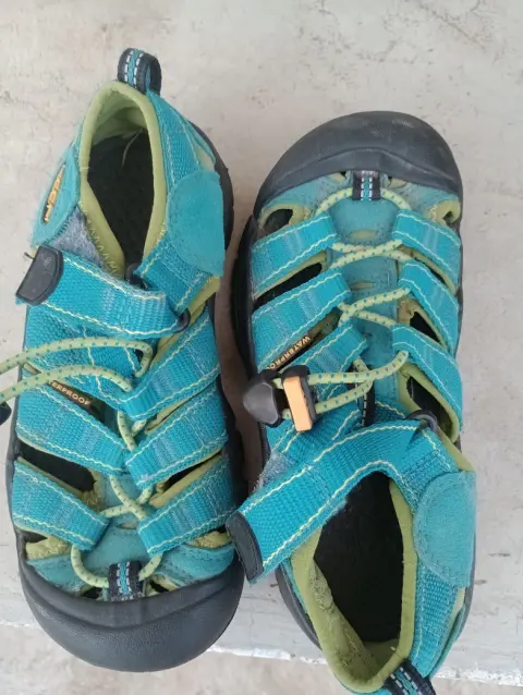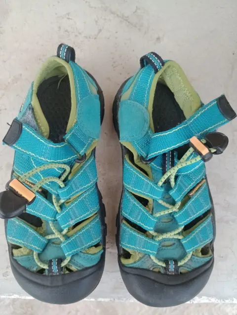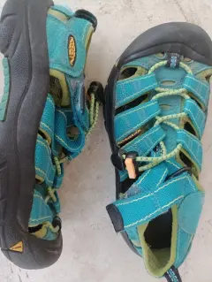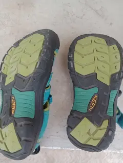 Sandalia para niño, marca KEEN color azul con verde perfecta para la playa o las vacaciones No. 18 en muy buen estado.