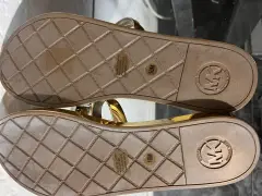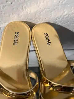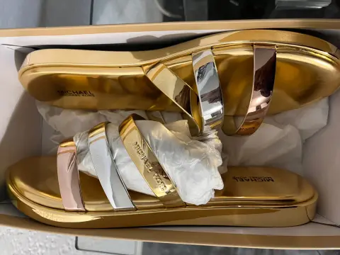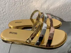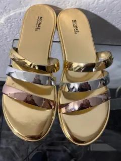 Sandalias en color dorado con metálico, nuevas, originales, en caja, marca Michael Kors, talla 27 mexicano para dama