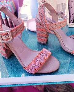 Sandalia naranja. Sandalia naranja tejido sintético artesanal con tacón de 10 cm con detalles en dorado, nuevas a estrenar