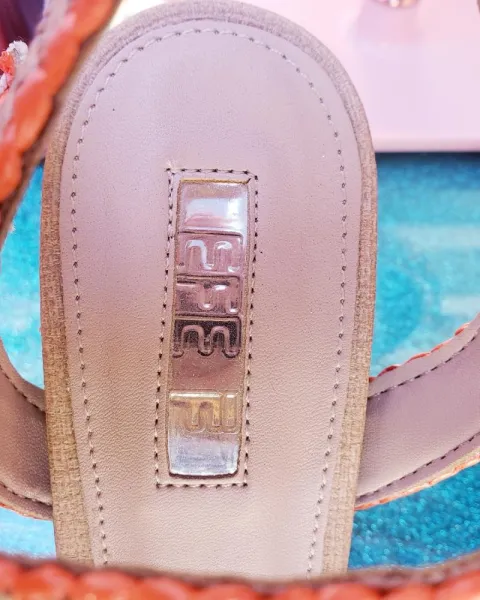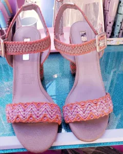 Sandalia naranja tejido sintético artesanal con tacón de 10 cm con detalles en dorado, nuevas a estrenar