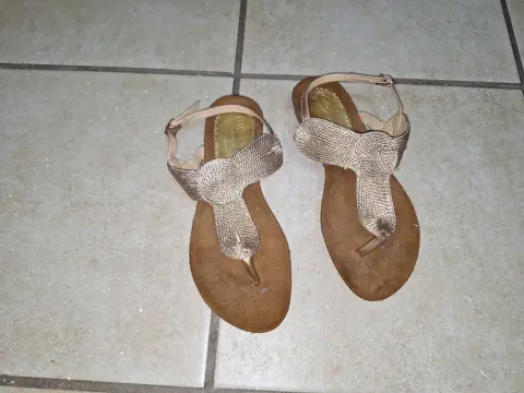 Sandalia para de gallo, el tejido es en color oro. Suela de plástico y con antiderrapante. Muy cómodo
