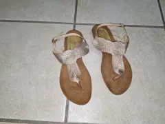 Sandalia pata de gallo. Sandalia para de gallo, el tejido es en color oro. Suela de plástico y con antiderrapante. Muy cómodo