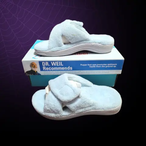 Sandalia/Pantunfla Ortaheel, talla 23, color azul cielo, con ajuste de velcro, plantillas acolchada, suela sintética antideslizante, estilo ortopedico, hechas de material sintetico y tela suave para Calzar dentro y fuera de casa, nuevos a estrenar con caja original.