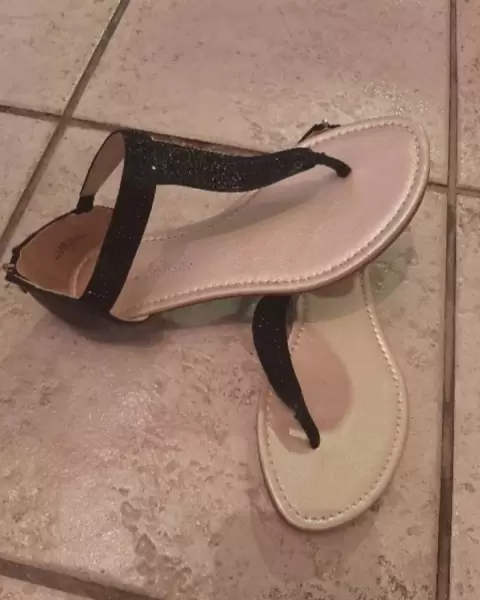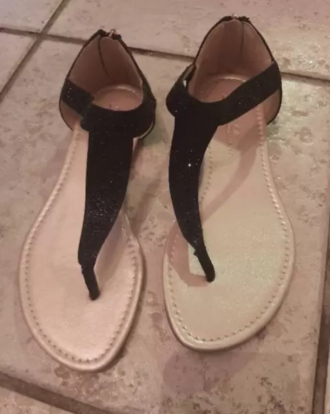 Sandalias. Son negras con piedritas no se despegan brillan muy padre