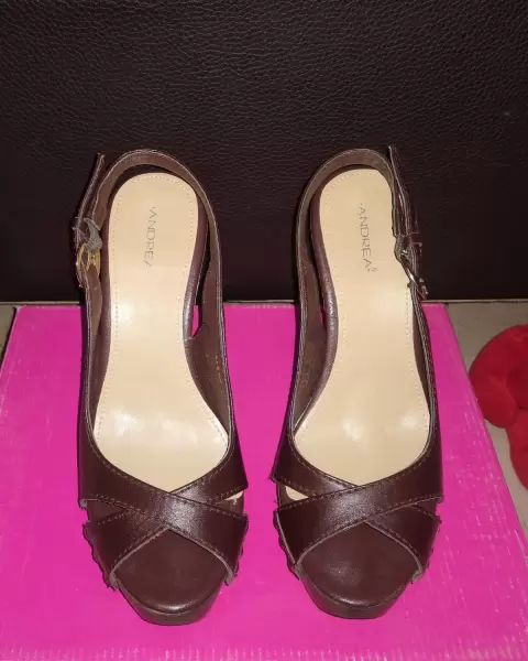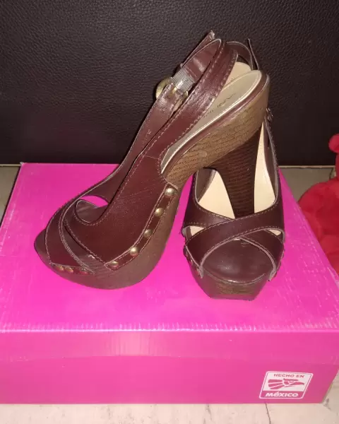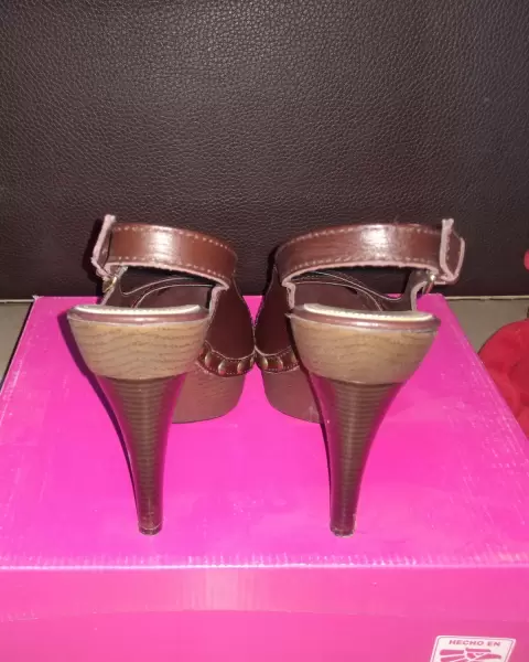 Sandalias con tacón color café, correa ajustable. Se usaron solo una ocasión.Medida: 3½ quedando a 4