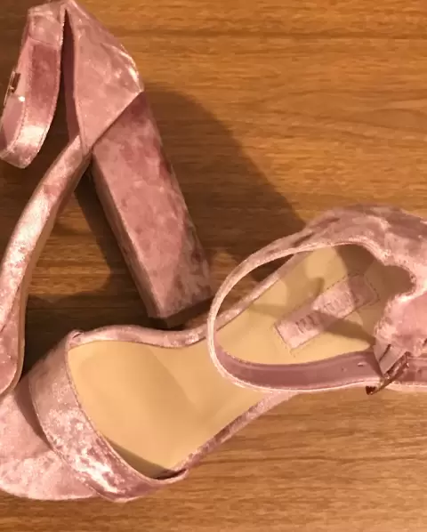 Sandalias. Hermosa sandalia de tacón en terciopelo rosa