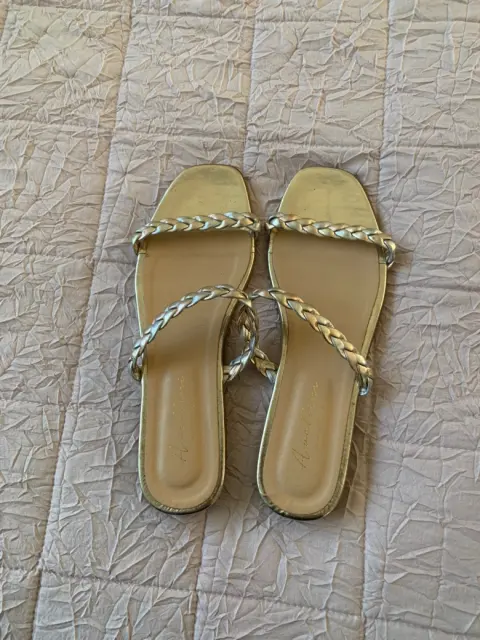 Sandalias. Hermosas sandalias color dorado se usaron una ves. Excelentes condiciones son para pie delgado vienen reducidas