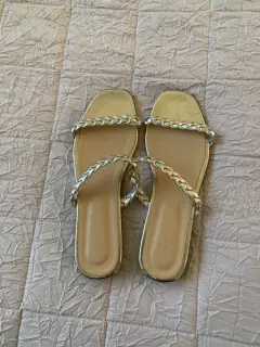 Hermosas sandalias color dorado se usaron una ves. Excelentes condiciones son para pie delgado vienen reducidas