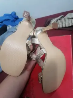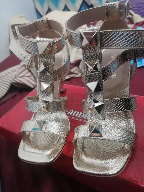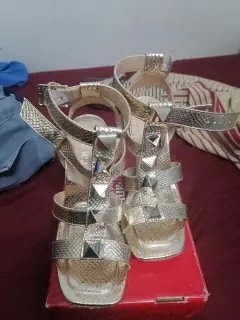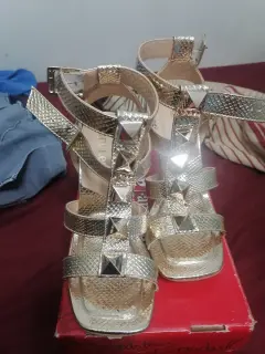 Sandalias de tacon doradasMarca andreaNuevasNumero 4Tacon aporx 9 cm