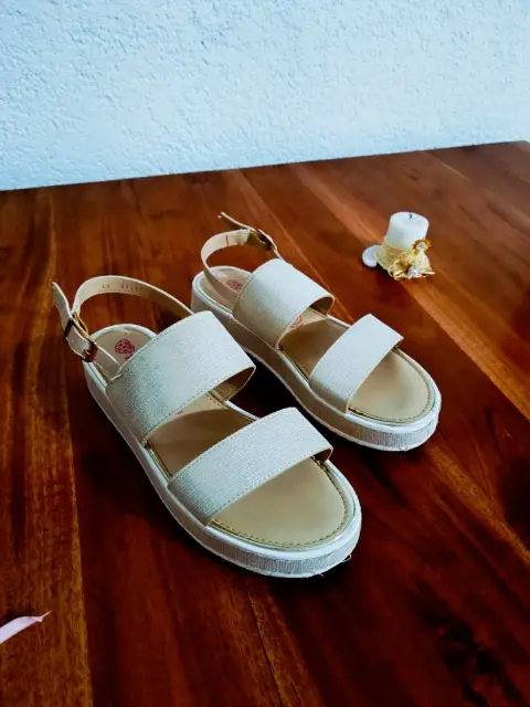 Sandalias. Sandalias de plataforma en color beige con toques dorados en las correas