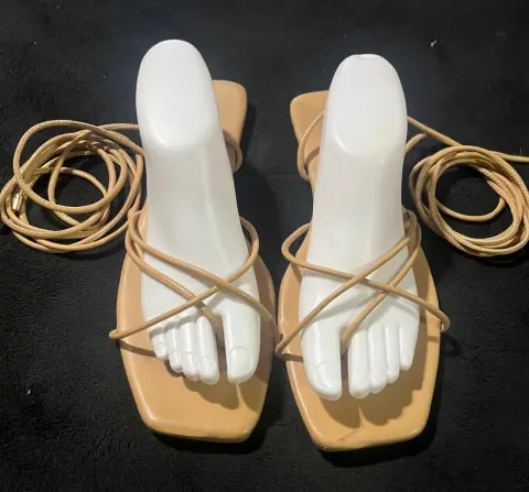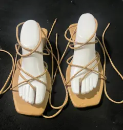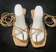 Sandalias planas con cintas largas para ajustar a la pierna color nude número # 28 mexicano Sin uso!!