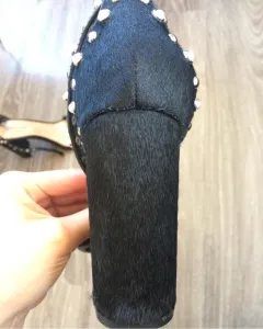 Son sandalias con estoperoles y perlas, están en perfecto estado, son de pelo de poni, elegantes y llamativas.