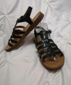 Sandalias bajas de tiras. Sandalias NUEVAS, negras solo tiene una manchita del mismo brillo de la suela, tiene correa ajustable