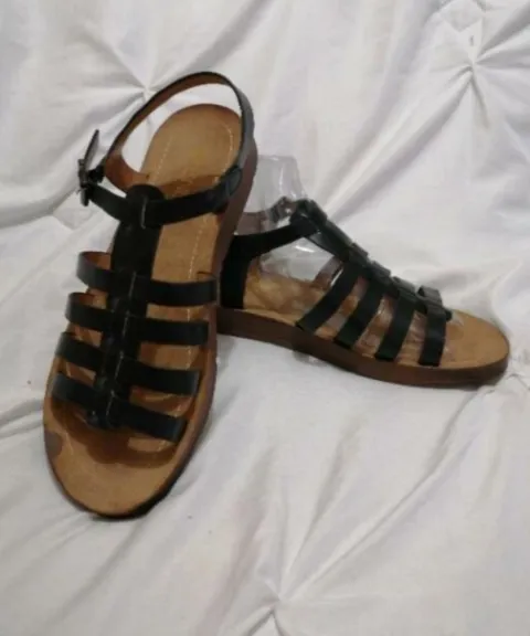 Sandalias NUEVAS, negras solo tiene una manchita del mismo brillo de la suela, tiene correa ajustable