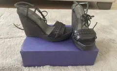 Sandalia café marca Stuart Weitzman con tacón corrido super cómodo con caja original y en excelente estado.