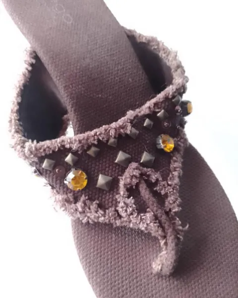 Sandalias cafés con estoperoles. Hermosas sandalias color café, en la parte de enfrente tiene estoperoles, son super cómodas