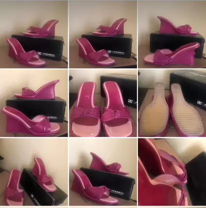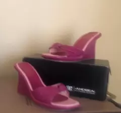 Linda’s sandalias con plataforma color magenta , se usaron muy poco como se ve en la suela . Los detalles de ven en las fotos , desde todos los ángulos . Miden 9.5 de alto .
