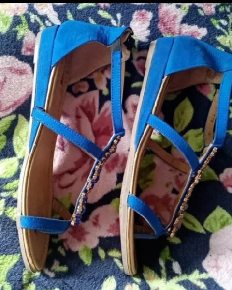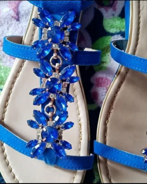 Sandalias con pedrería, tienen una mini plataforma, cuenta con unos resortes por si eres de pie ancho o se te hinchan los pies estan nuevas