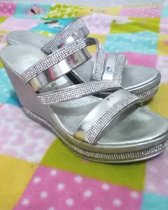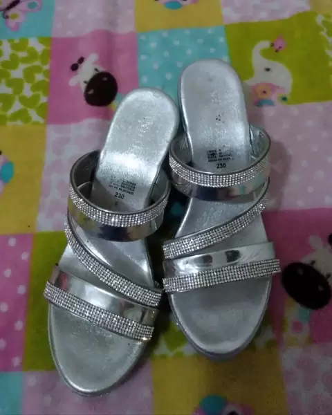 Bonitas sandalias súper cómodas con plataforma, color plata con detalles brillantes.✍️#23 exacto👉Alto de tacón 10cm👉Alto de plataforma 3cm Cómo nuevas, sin detalles, las fotos no ayudan mucho