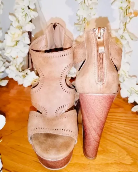 Sandalias con plataforma café. Sandalias café lucen padrísimas. Se ven super sexys, con cierre trasero✨♡♡DISPONIBLE PARA ESTAR EN TU CLOSET♡♡✨