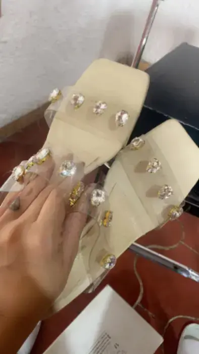 Sandalias con tacón transparente.  Super lindos y cómodos vienen con unos repuestos de Brillitos