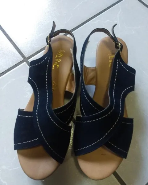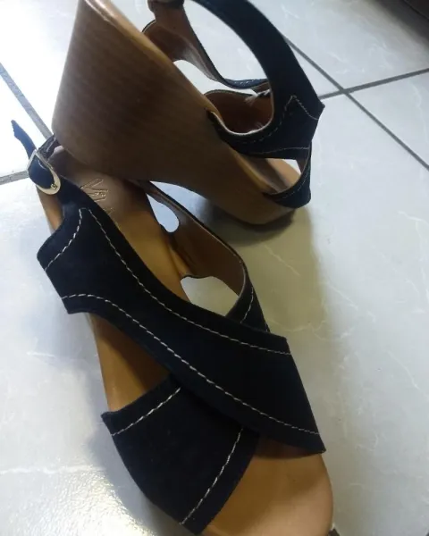 Sandalias cruzadas azul marino. Cómodas sandalias cruzadas azul marino, con plataforma de 6cm, broche en la parte lateral del talón