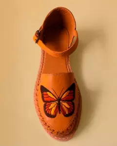 Sandalias de piso hechas a mano de cuero con mariposa en el frente tenemos talla 3,4,5