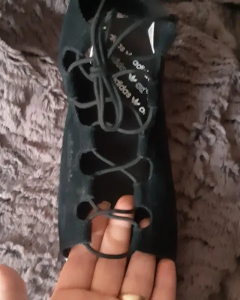 Sandalias de modelo único! Nunca verás otras iguales , negras de gamuza , marca Adidas , originales. Talla 5 .