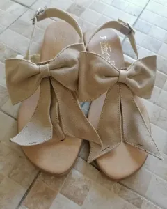 Sandalias de moño guerrero. Totalmente nuevas // 26mxn también quedan a 25 un poco grandes // tono nude en gamuza // tienen dos rayas marcadas al inicio del moño como se muestra en foto