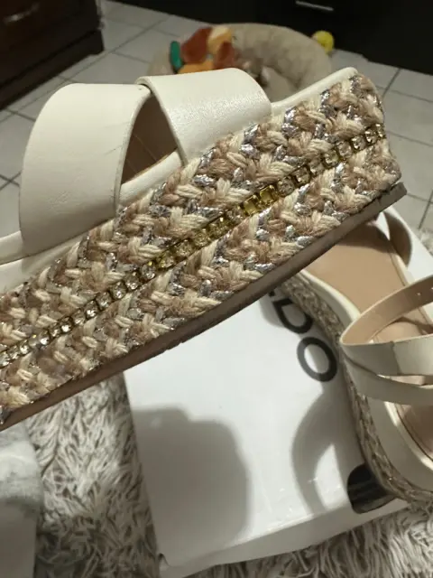 Sandalias Aldo de piel talla 4 mx 7 usa.Se envían con su caja originalSe usaron una vez un rato muy pequeño. Detalle en última fotografía, le faltan algunas piedritas pero así estaban cuando los compré