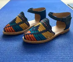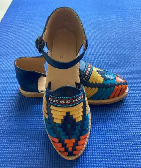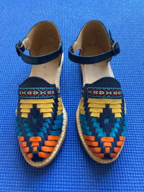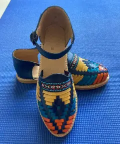 Sandalias de cuero hechas a mano tejido de colores traídas desde san Cristobal de las casas chiapas .