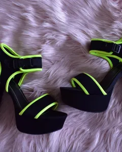Sandalias de plataforma. Hermosos heels de plataforma con bies en tono amarillo neón, son 8 americano o 5 mexicano pero vienen reducidos, diría que quedan mejor a un 4