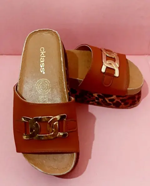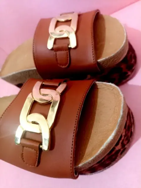 Completamente nuevos. Sin caja. Decoración de cadena, piel y diseño de animal print en perfecto estado. Suela antiderrapante y piel por dentro. Fieles a su talla. Cómodos y casuales.