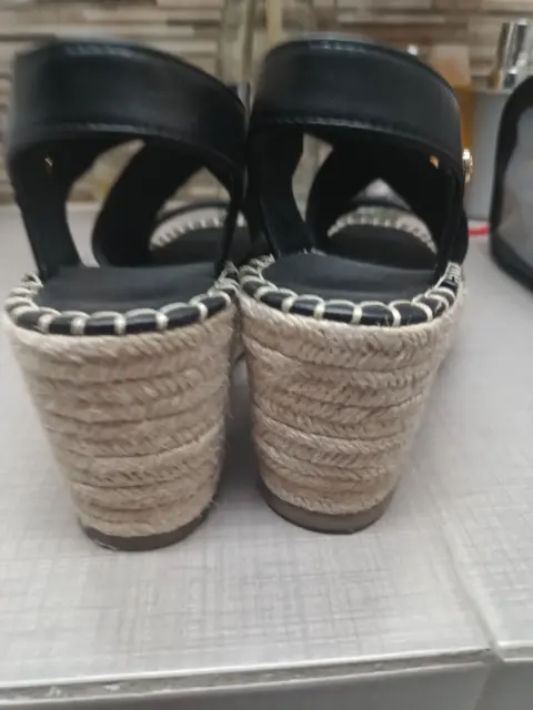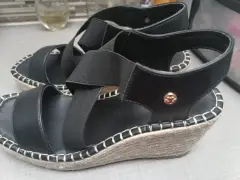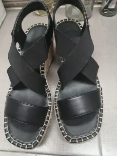 Sandalias de plataforma color negro. Marca Gillio. Num 4. Con correas cruzadas elástica. Muy cómodas. Sin hebillas. Plataforma 8 cm.