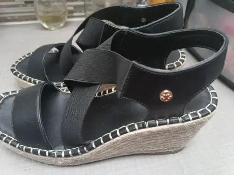 Sandalias de plataforma color negro. Marca Gillio. Sandalias de plataforma color negro. Marca Gillio. Num 4. Con correas cruzadas elástica. Muy cómodas. Sin hebillas. Plataforma 8 cm.