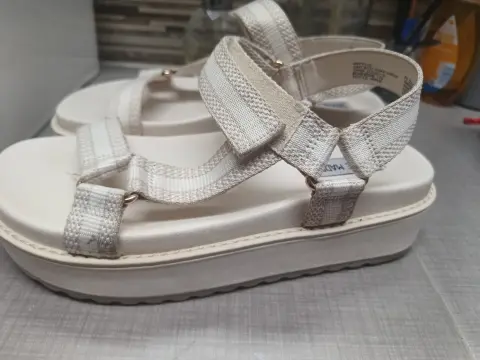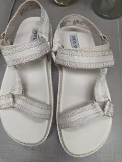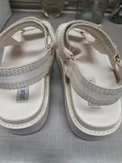 Sandalias de plataforma nude Steve Madden. Num 4. Con correas y Velcro para abrochar de forma fácil. Cómodas y suaves.