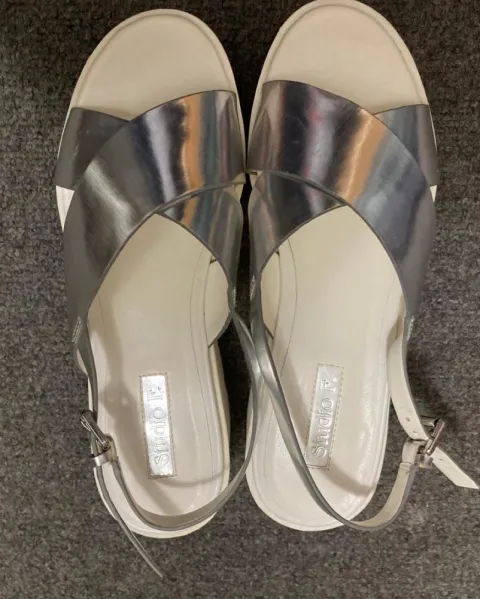 Sandalias de Plataforma Studio F. Hermosas sandalias de plataforma únicas en estilo, plataforma de 5 cm., ideales para looks casuales, acabado en color plata, totalmente nuevas sin ninguna puesta.