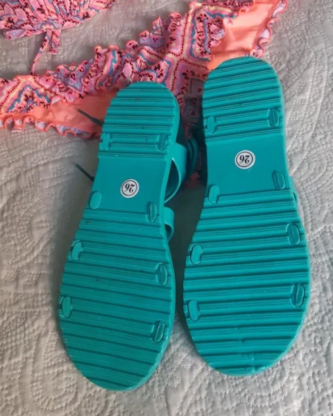 Sandalias de plastico tipo romanas con agujeta, talla 6 , nuevas .