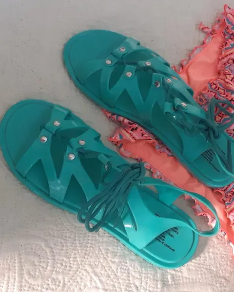 Sandalias de playa. Sandalias de plastico tipo romanas con agujeta, talla 6 , nuevas .