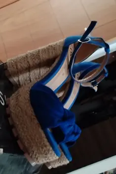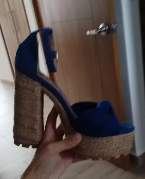 Lindas sandalias plataforma de pulcera, tacón grueso, en color azul, las puedes llevar con tus jeans o ls prenda que prefieras ya que su moderno diseño va muy bien con todo.