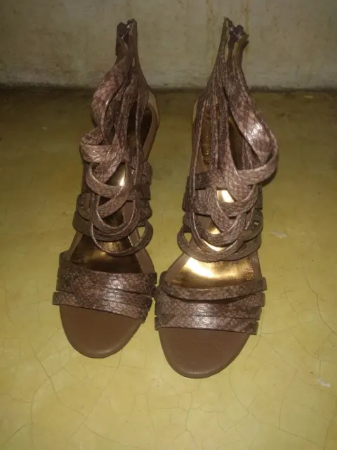 Sandalias de tacon. Bonitas sandalias de mujer color café tipo víbora con plataforma cómodas nuevas
