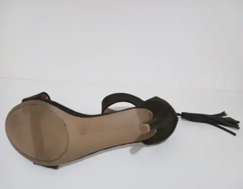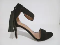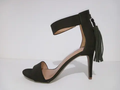 Sandalias de tacón con pulsera. Hermoos zapatos de tipo ante color verde olivo.Pulsera en tobillo con cierre trasero y aplicación que da un look super elegante.Altura del tacón 10 cm