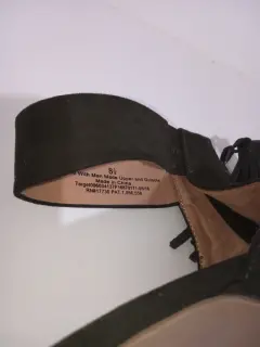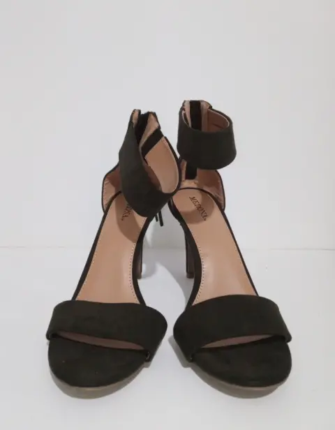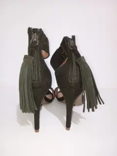 Hermoos zapatos de tipo ante color verde olivo.Pulsera en tobillo con cierre trasero y aplicación que da un look super elegante.Altura del tacón 10 cm