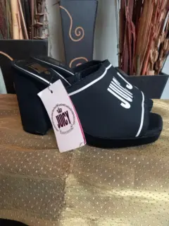 Sandalias de tacón Juicy Couture. Sandalias de tacón ancho de 11cm, tela elástica q abraza bien el pie para caminar cómodamente, nuevos, #25, físicamente están más lindos q en las fotos!!