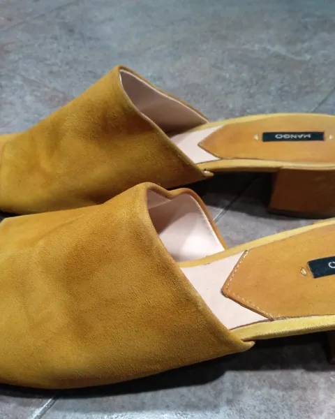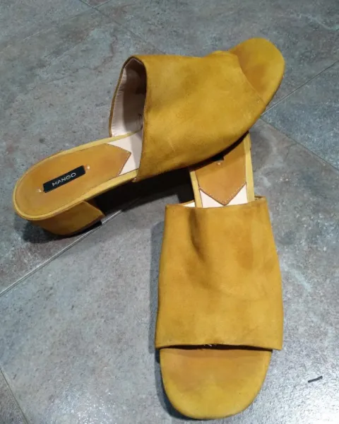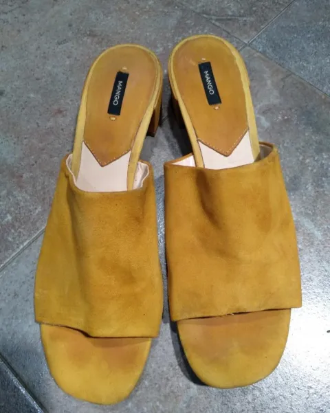Sandalias de tacón Mango. En buen estado solo les hace falta limpieza las puedes usar para un look casual o formal estan divinas, color mostazasMedida del tacon 5cm