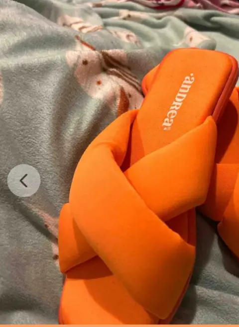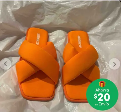 Sandalias de tela acolchonadas cruzadas sin tacón puestas una vez de color naranja